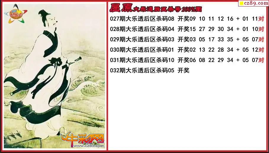 大乐透032期屈原后区杀号图